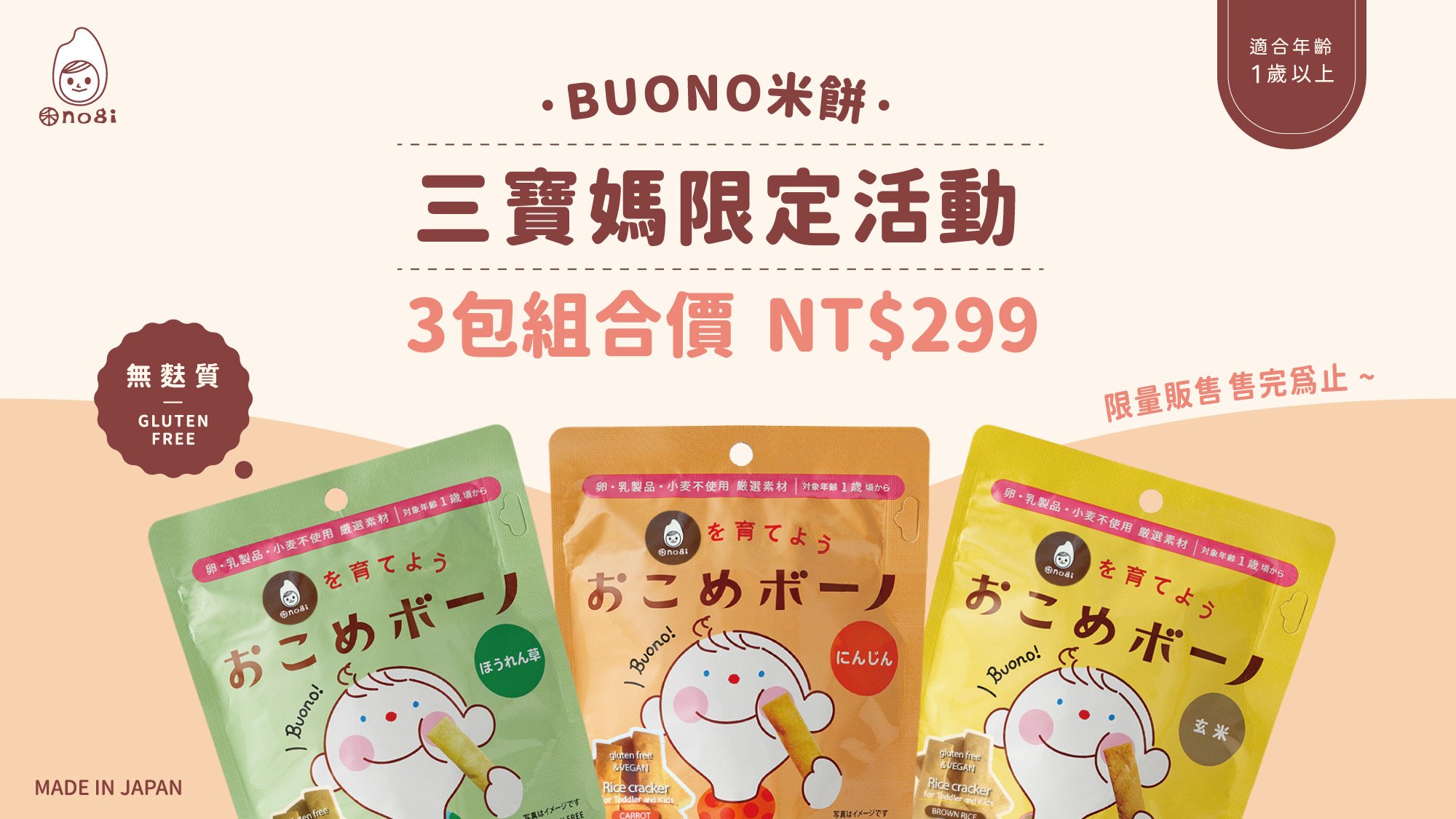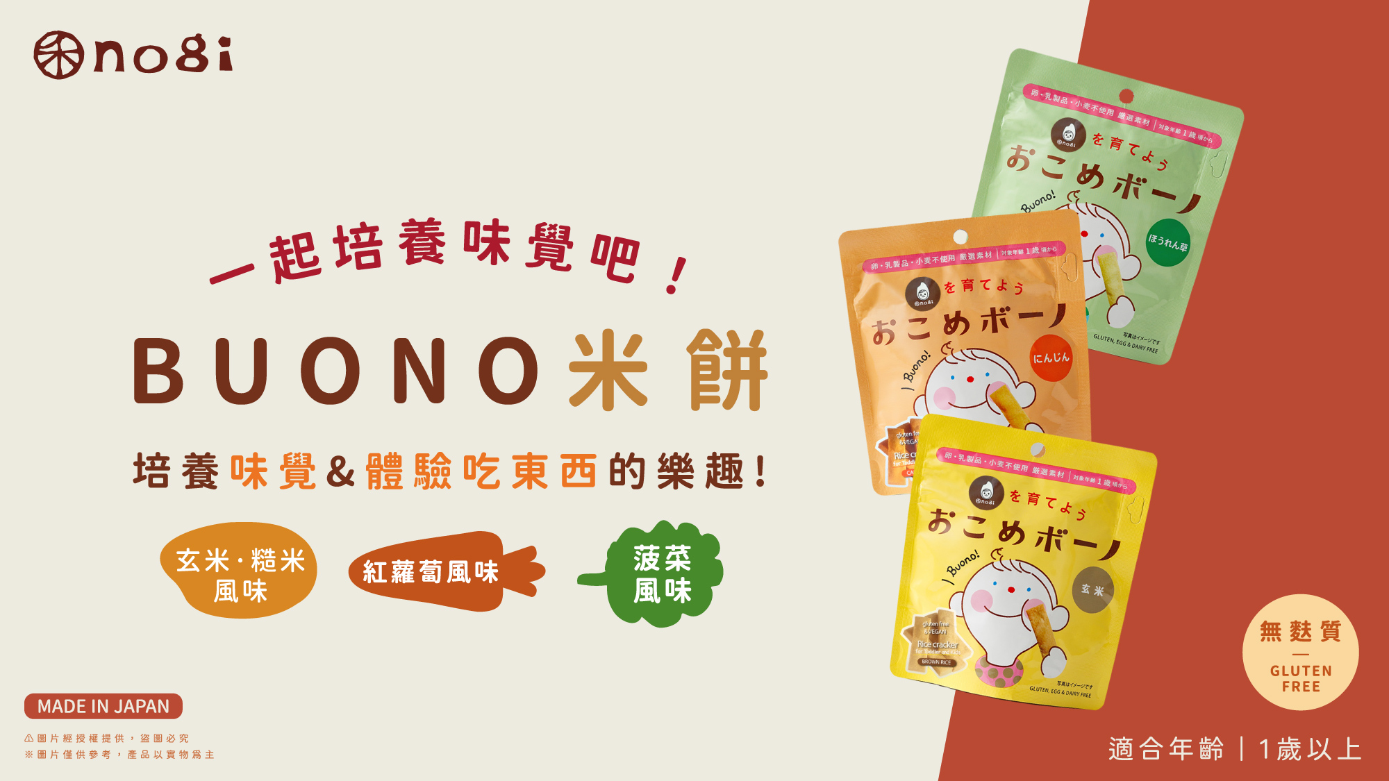 【禾 nogi】日本熱銷 無麩質點心 | Buono米餅 | 紅蘿蔔風味