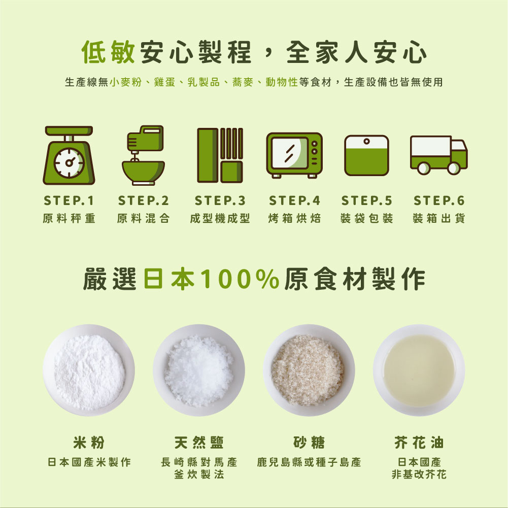 不使用雞蛋、乳製品和小麥粉,而是採用日本國產米粉製作,