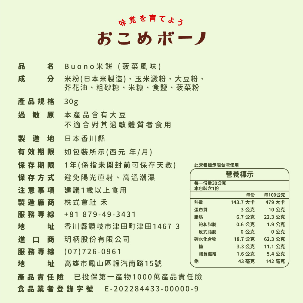 【禾 nogi】日本熱銷 無麩質點心 | Buono米餅 | 菠菜風味